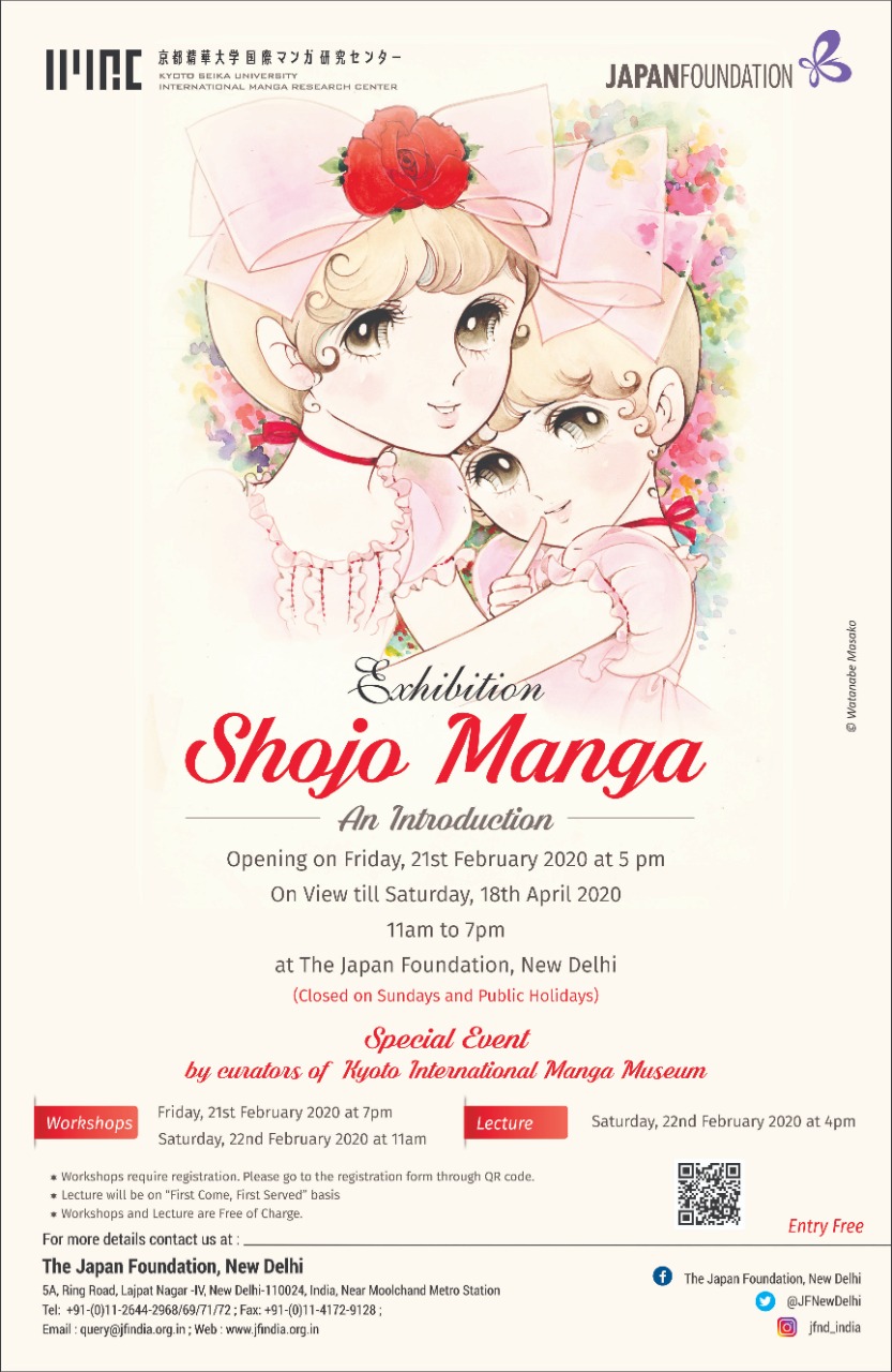 Exhibition: Shojo Manga On View till Saturday, 18th April 2020 11:00am to :5:00pm at The Japan Foundation, New Delhi (Closed on Sundays and Public Holidays) ********************************** For exhibition details click HERE