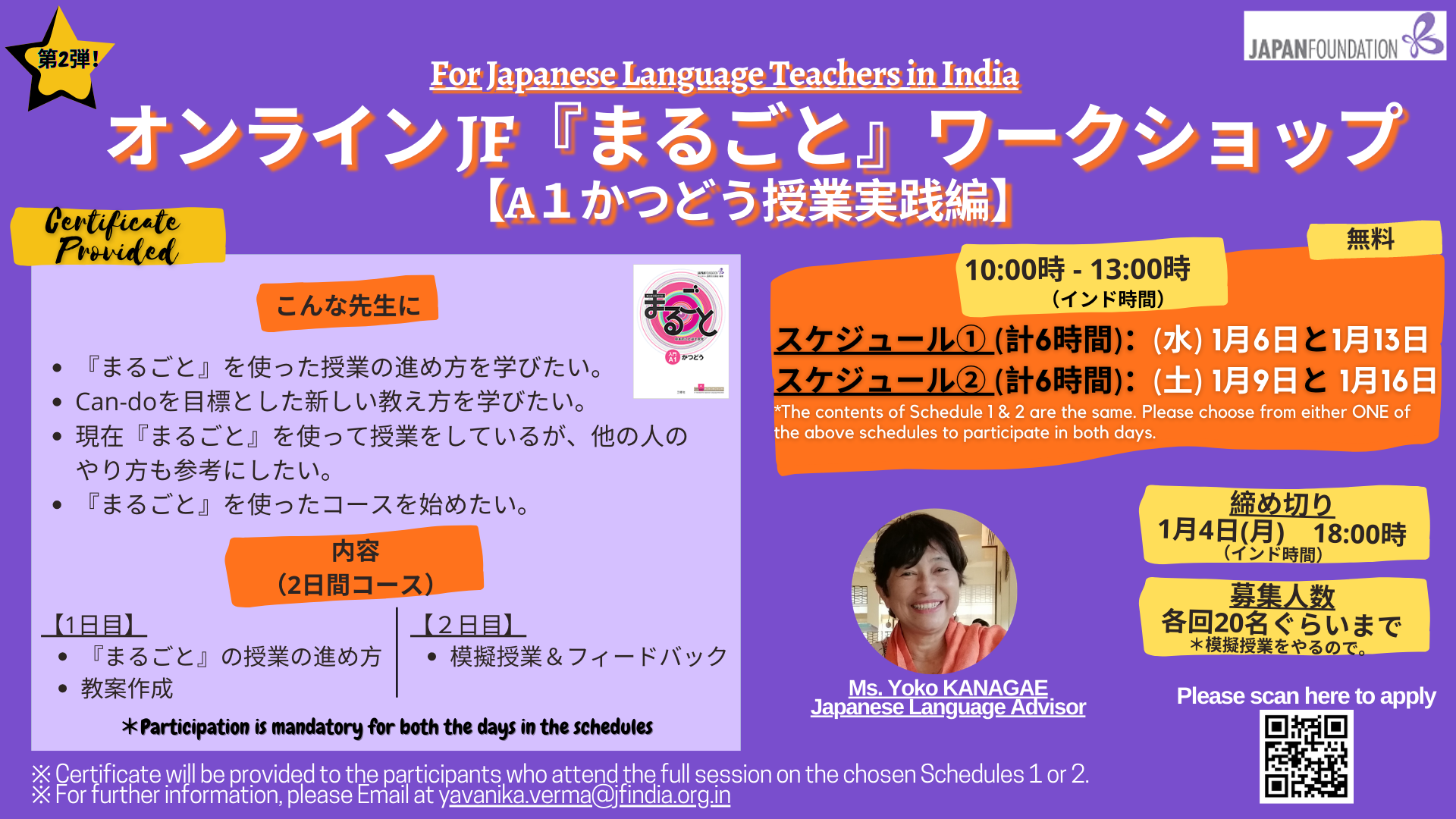 Dear Japanese Language Teachers in India. We had conducted Marugoto Workshop in November, explaining the “Basics”. Now we are move a step forward to bring to you all the JF Online Marugoto Workshop on “A1かつどう授業実践編” This 2 days’ Workshop is for teachers who would like to learn: How proceed in classes using ‘Marugoto’. New teaching […]